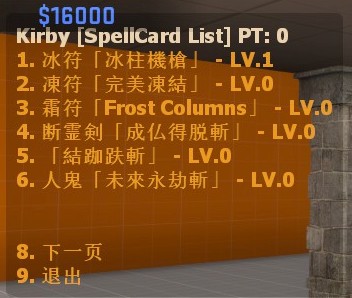 5.使用鼠标左右上下移动,可以预选择一个符卡技能