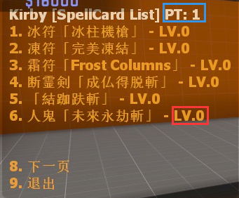 2.左侧会弹出这样一个菜单,这是你所有可用的符卡技能列表